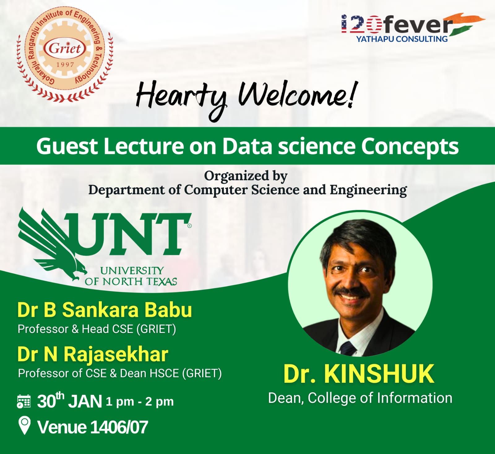‣ The faculty at CSE department contribute to good research community in the areas of Machine Learning, Deep Learning, Block Chain Technology, Artificial Intelligence, Cloud Computing and Internet of Things, Big Data Analytics, and Data Science.